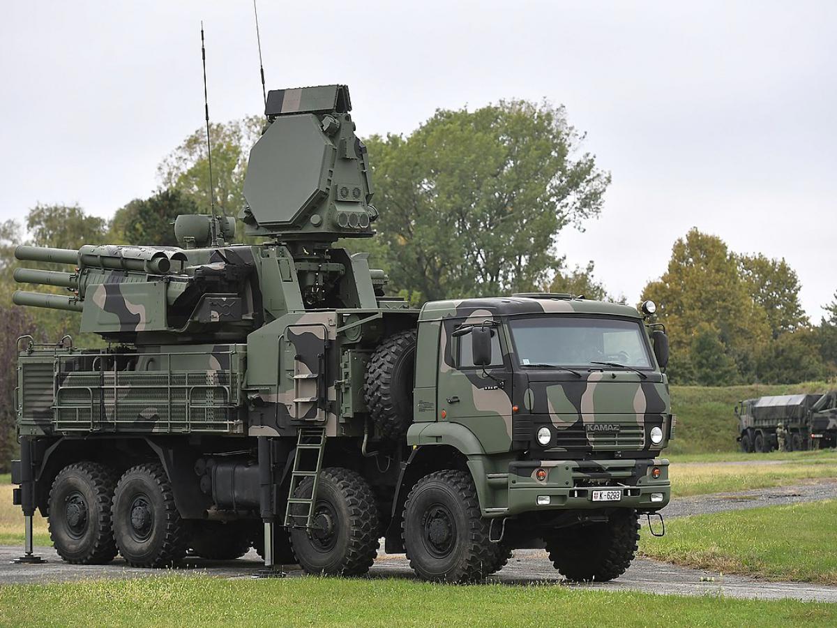 The Pantsir (Russian: Панцирь, lit. '[body] armour') missile system is a family of self-propelled, medium-range surface-to-air missile and anti-aircraft artillery systems. Three types of vehicles make up one system: a missile launcher, a radar truck and a command post. Starting with the Pantsir-S1 (Russian: Панцирь-С1, NATO reporting name SA-22 Greyhound) as the first version, it is produced by KBP Instrument Design Bureau of Tula, Russia, and is the successor to the Tunguska M1. The Pantsir-S1 was designed to provide point air defence of military, industrial and administrative installations against aircraft, helicopters, precision munitions, cruise missiles and UAVs; and to provide additional protection to air defence units against enemy air attacks employing precision munitions, especially at low to extremely low altitudes.